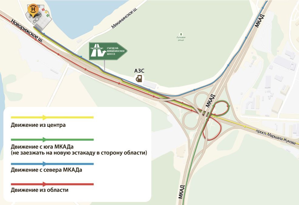 Heliport Moscow is located just 500 meters from the Moscow Ring Road along Novorizhskoye Shosse (outbound), which provides excellent transport accessibility.